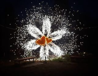 Пиротехническое сердце, представляет собой конструкцию, которая выполнена в виде сердца, или конструкция с двумя сердцами. А по всему контуру конструкции размещены пиротехнические устройства. При зажигании устройство начинает радовать вас искрящим эффектом. Пиротехническое сердце нельзя зажечь самому, для этого приглашают специально обученного пиротехника. Он с помощью дистанционного пульта воплощает красоту в жизнь.