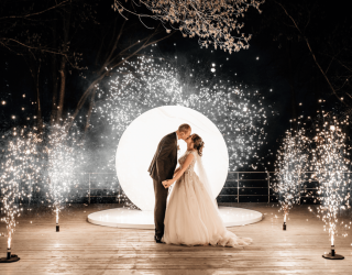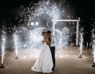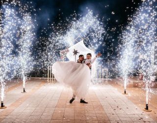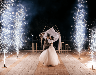 Только представьте, какие они красивые и большие. Их можно запускать как в помещении, так и на улице. Являются абсолютно безопасными и не имеют запаха. Хорошо совмещаются с тяжелым дымом. Только представьте, как молодожены начинают кружиться в первом танце любви и нежности. Их охватывают клубы тяжелого дыма, расстилаясь по всему залу. А свадебные фонтаны распускают свои ветви искр, дополняя танец искренность и любовью.