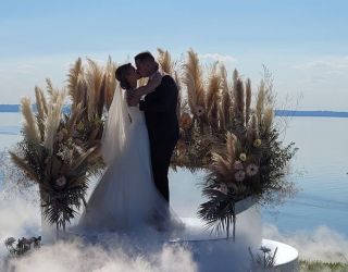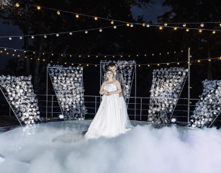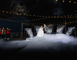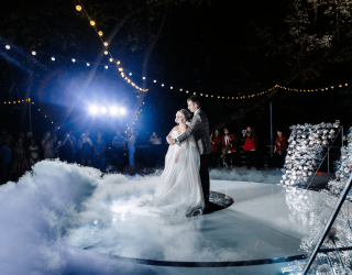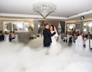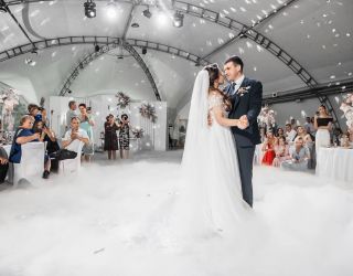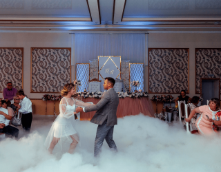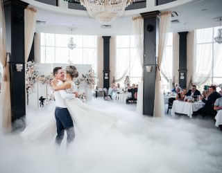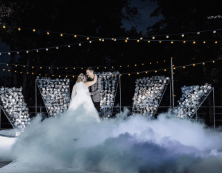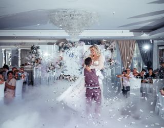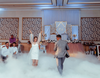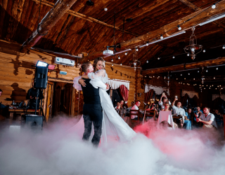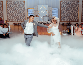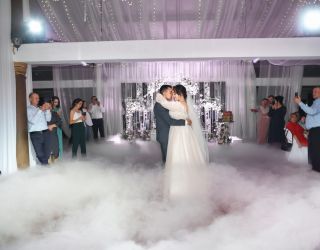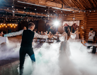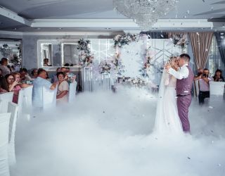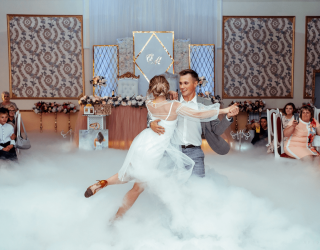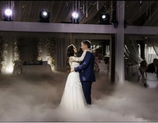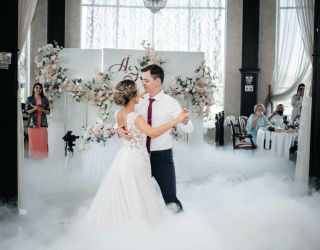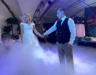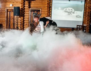 Холодный дым на свадьбу безопасный. Он не имеет запаха, плотный, стелится на полу, а так же не пачкает одежду. Создает ощущение парения для танца и удивляет гостей.
