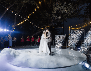 Дым для танца на свадьбу или тяжелый дым на свадьбу – это удивительный и очень красивый спецэффект, который расстилается по земле от генератора (взаимодействия горячей воды и сухого льда). Его высота от 25 до 40 сантиметров, а заполняется пространство за 15 секунд. Еще в течении 3-5 минут тяжелый дым стелется и не испаряется, что позволит использовать его для самого важного, создавать эффект облаков, первого танца молодожен.